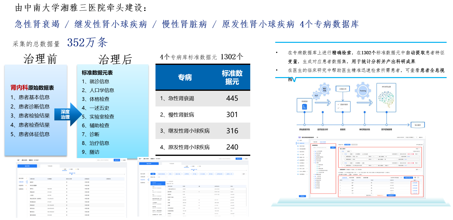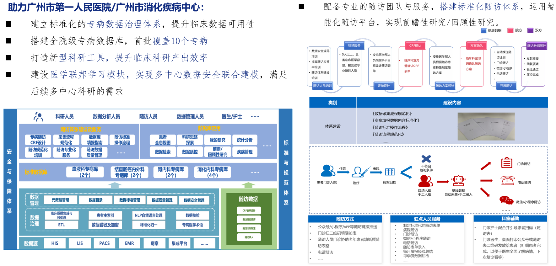 助力广州医科大学临床科研一体化平台建设,收集6家附属医院约23T的医疗数据并进行深度治理,形成辅助广医大体系医、教、研等多方位的科研机制建设和成果孵化平台。